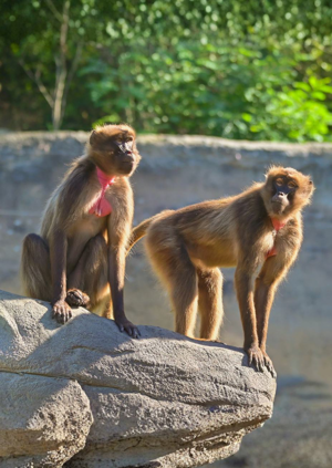 Tito unikátní primáty, známé svým společenským chováním a hlasitou komunikací, zde žijí v osmičlenné skupině. Společně s nimi obývají výběh i damani skalní, nejbližší příbuzní slonů. Díky otevřenému prostoru mohou návštěvníci pozorovat přirozené chování dželad, jejich hierarchii i každodenní interakce.