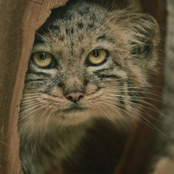 obývá suché kamenité stepi a horské oblasti do nadmořské výšky 5000 m? Je velký jako kočka domácí, ale díky dlouhé a husté srsti, která ho chrání před velkými výkyvy teplot, vypadá výrazně mohutněji. Jako jediná malá kočkovitá šelma má kulaté zornice a vydává zvuky podobné psímu štěkotu. Nemňouká. Loví převážně hlodavce – oblíbené má pišťuchy.