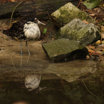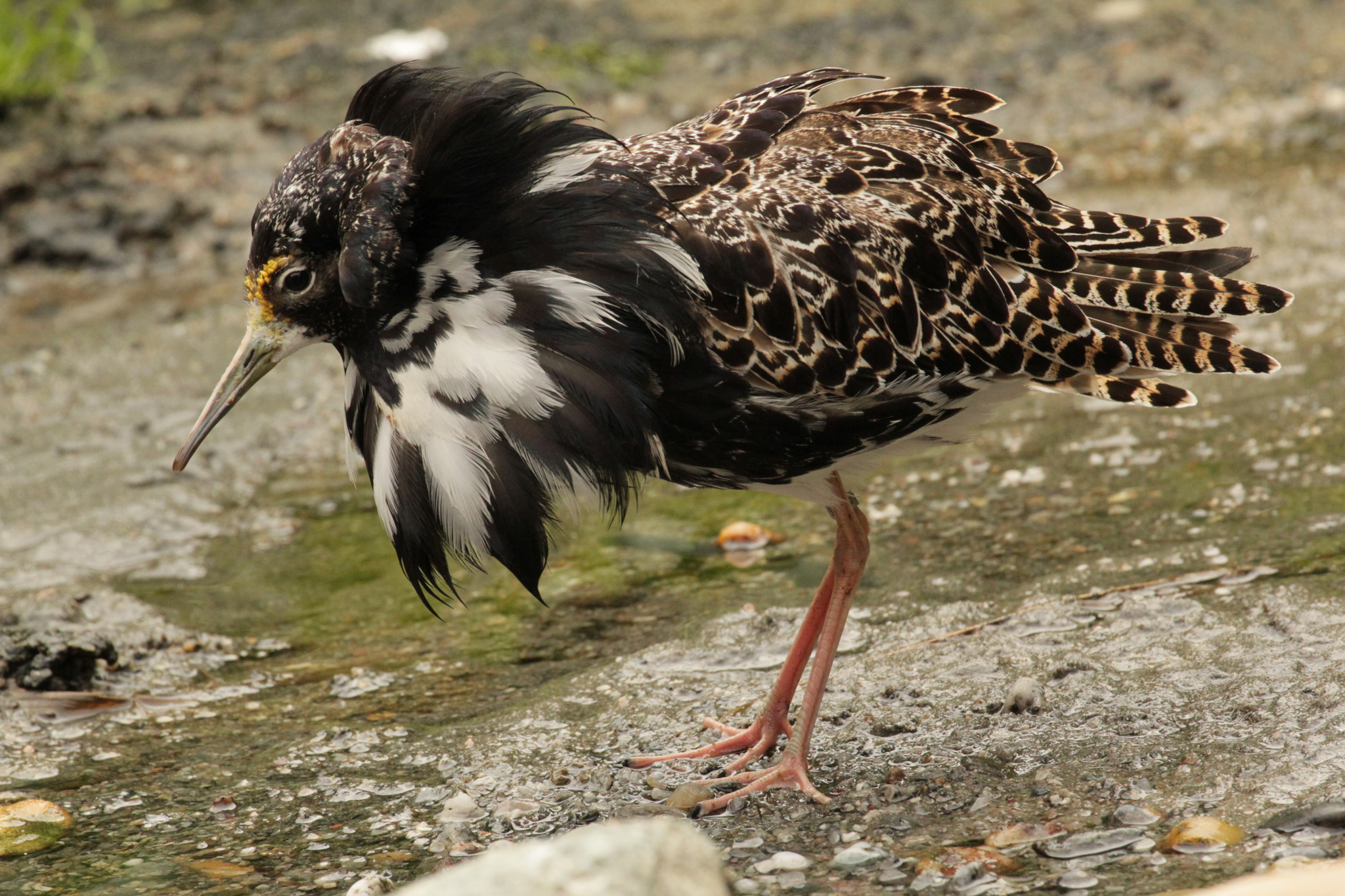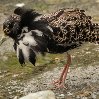 je to středně velký pták velikosti kosa černého s vysokýma nohama a výrazným sexuálním dimorfismem? Typický samec je mnohem větší než samice a v době páření se odívá do tzv. svatebního šatu.